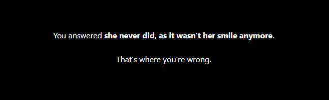 >>733865467It doesn't read as hesitant to me. It feels like she's saying it with conviction but doesn't know where that's coming from, or why she feels that way.