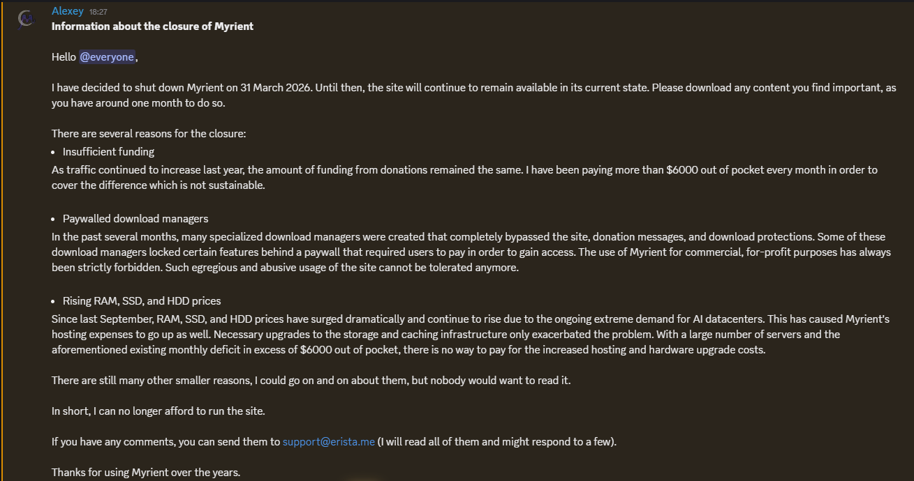 >>733888453>Are they actually shutting downyes, discord announced it 3 hours ago.