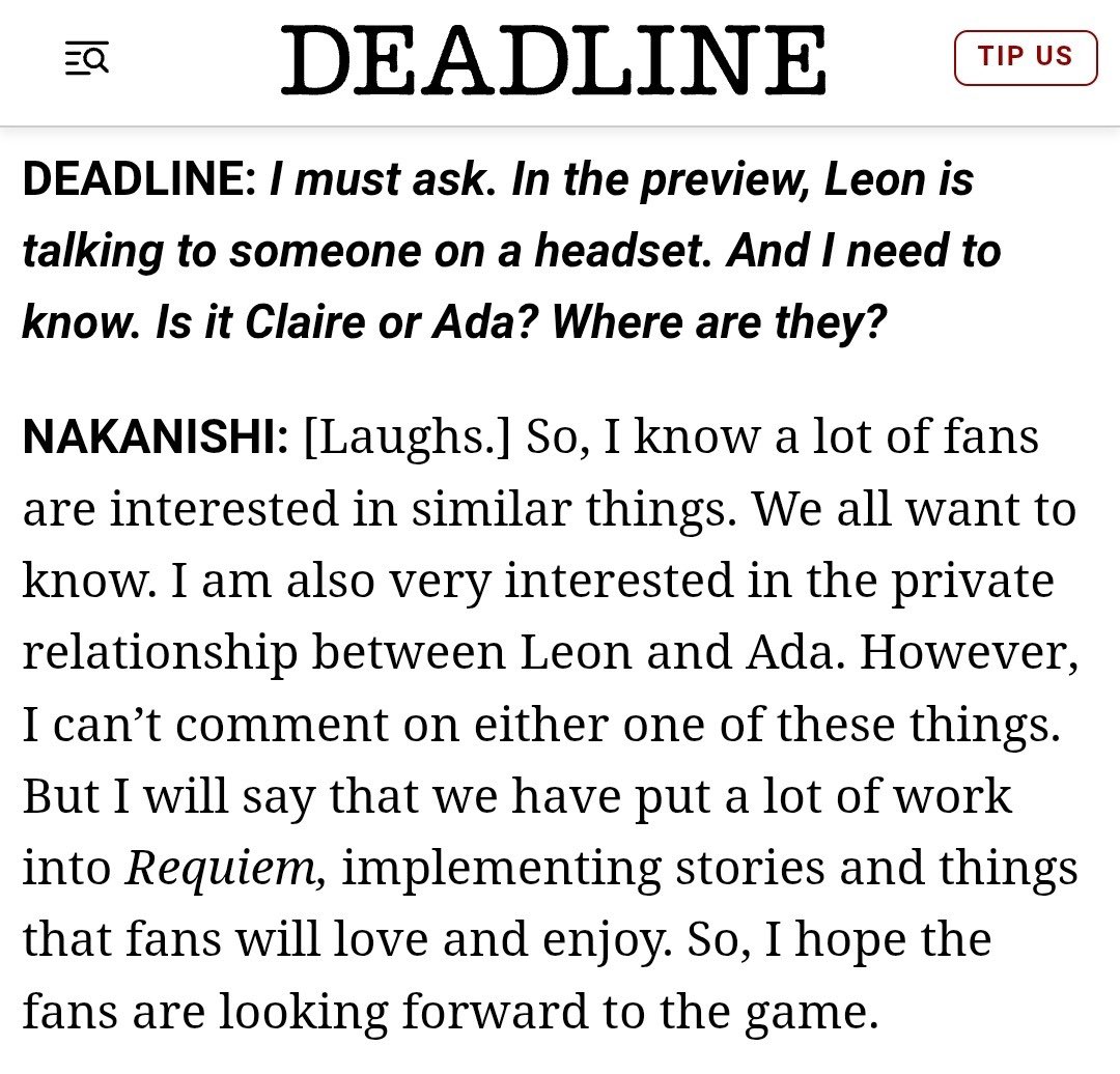 >>733902348Nakanishi has been trying to kill OG characters for decades, he definitely wanted the Leon dies ending to be canon, he even leaves it open ended in case Capcom execs change their minds in the future