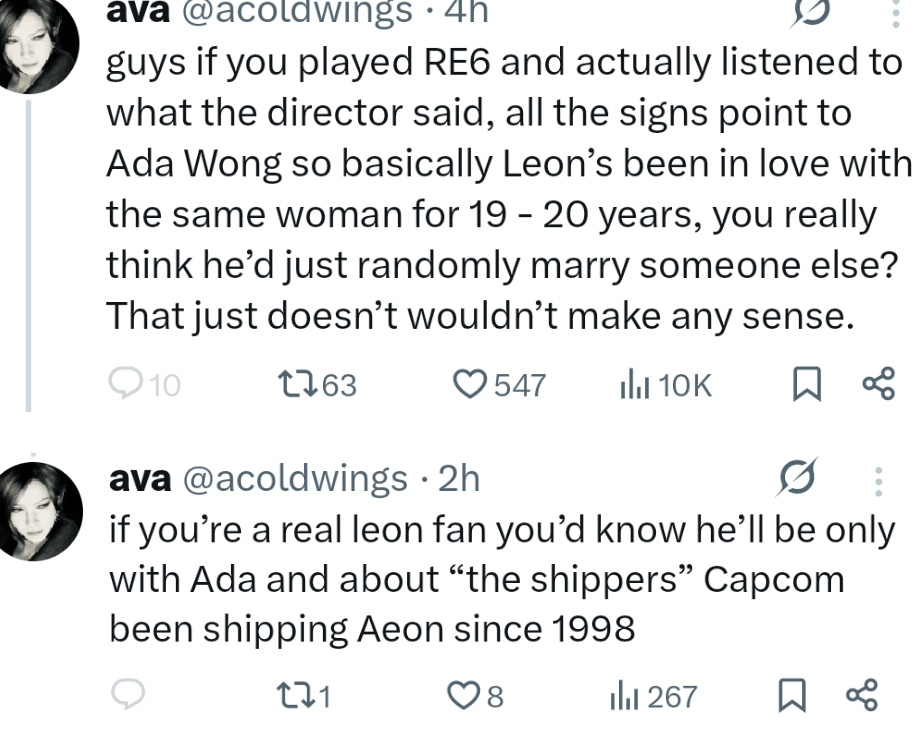 >>733901701Who? Sherry and Leon only talk about each other.