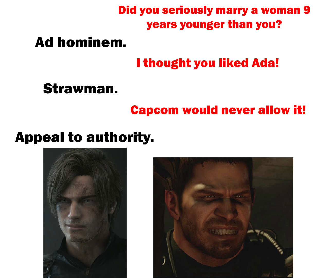 >>733901552Chris in shamblesinb4 its gonna be like a MGS4 Rose and Campbell thing again