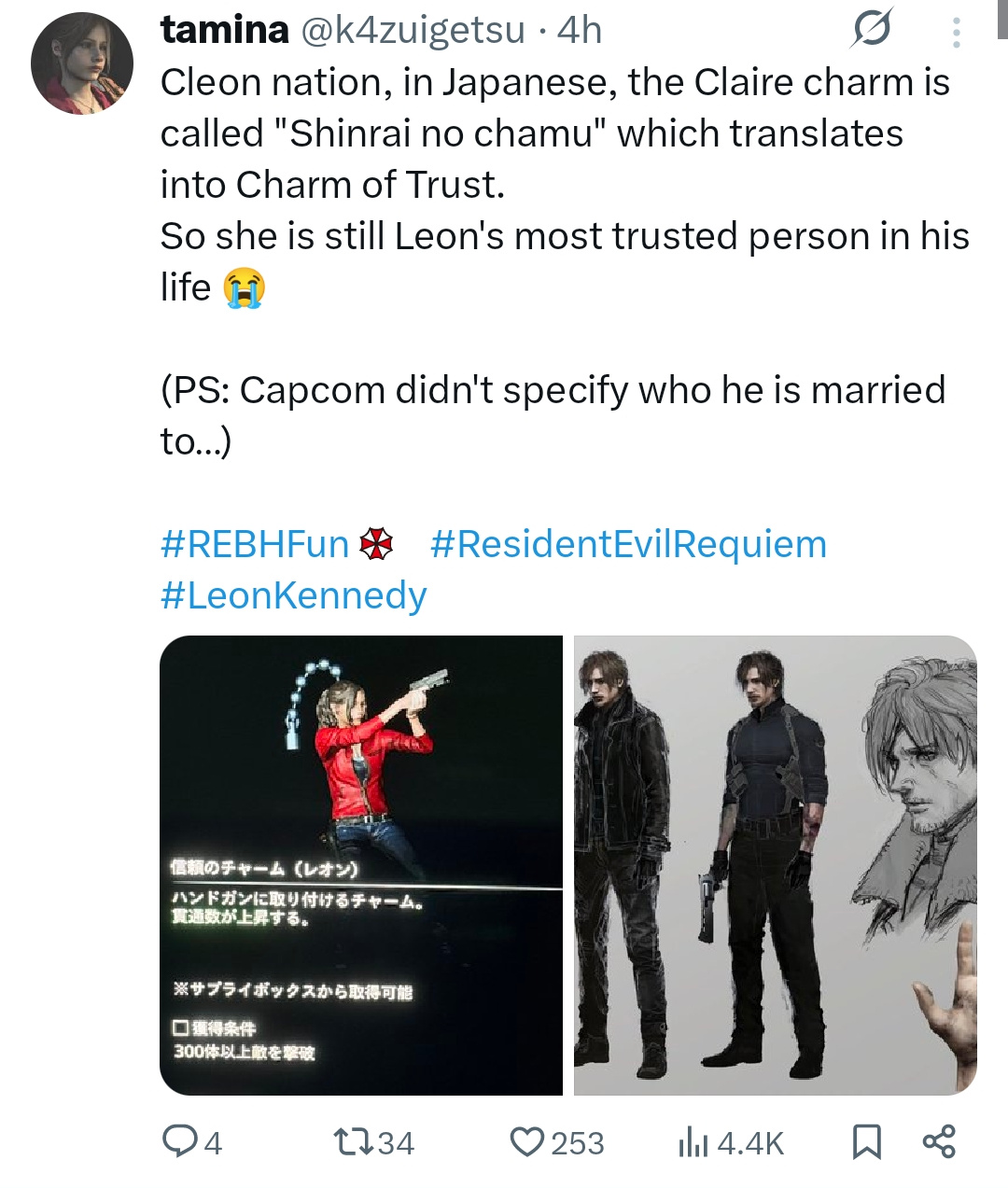 >>733906806Leon has a docile Plaga since RE4 and he has been showcasing superhuman abilities since. The way T virus didn't instantly turning him into a zombie proves that.