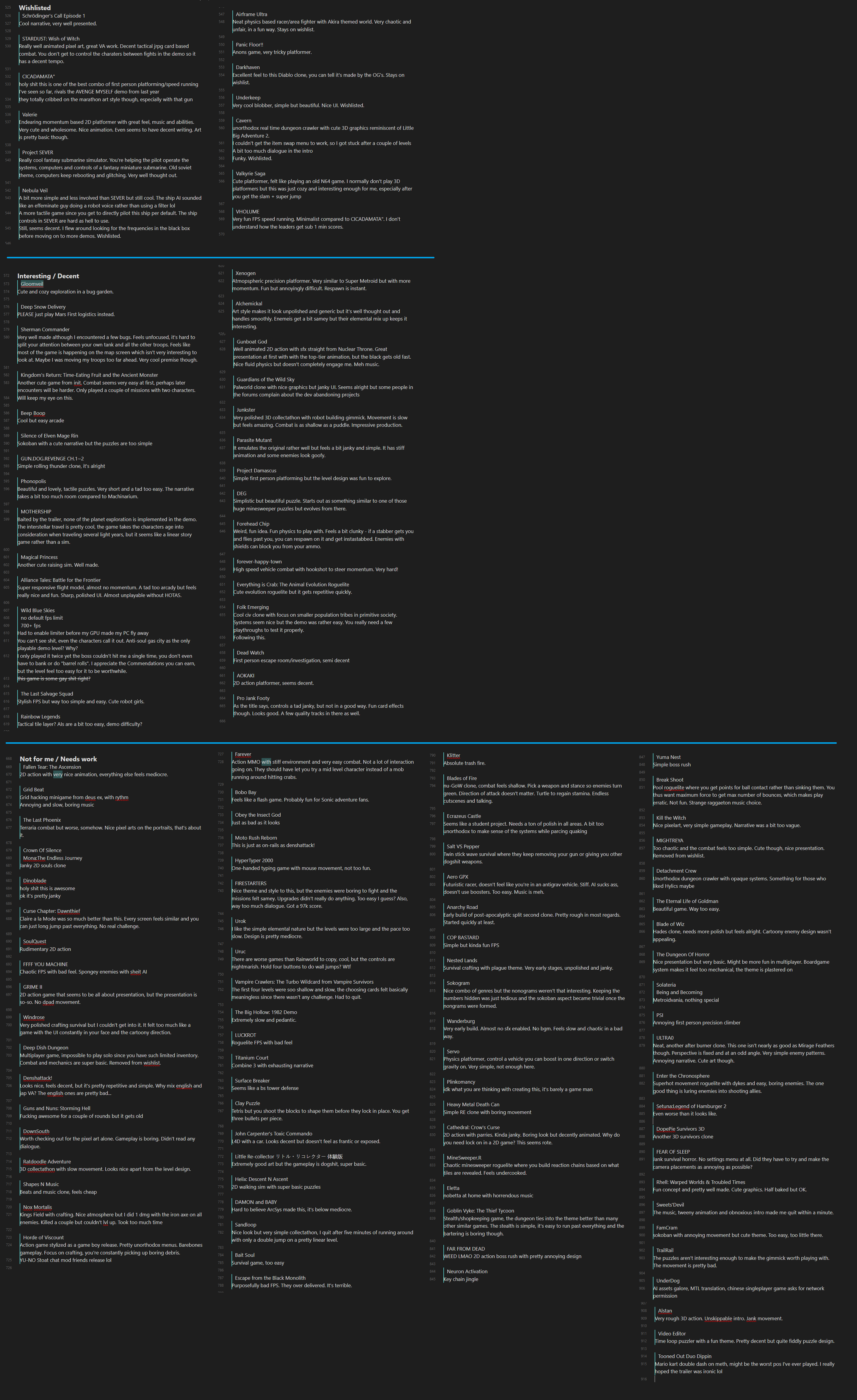 >>733902345Less noteworthy games each Next Fest, and long wishlisted games still don't have demos.