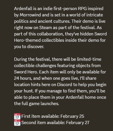 >>733960972The sword hero dev has a collab with them during this fest, you can find two sword hero related items which will carry on into the full gameI have no fucking clue what that would be though. I thought Ardenfall felt a tad stiff like, you're emulating a 22 year old game, you are allowed to improve on the game feel a bit. The characters look hideous but the writing seems decent.