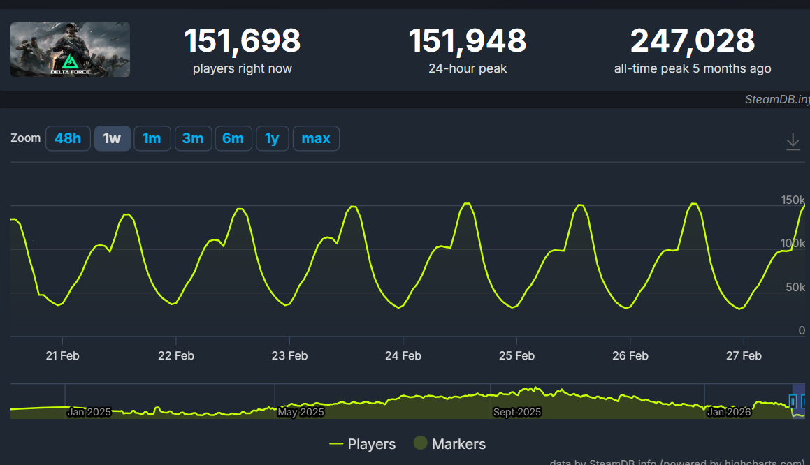 It's starting to go up again.let see how it's going, since now is prime time in Asia, but I'm sure China prefers Delta Force anyway.