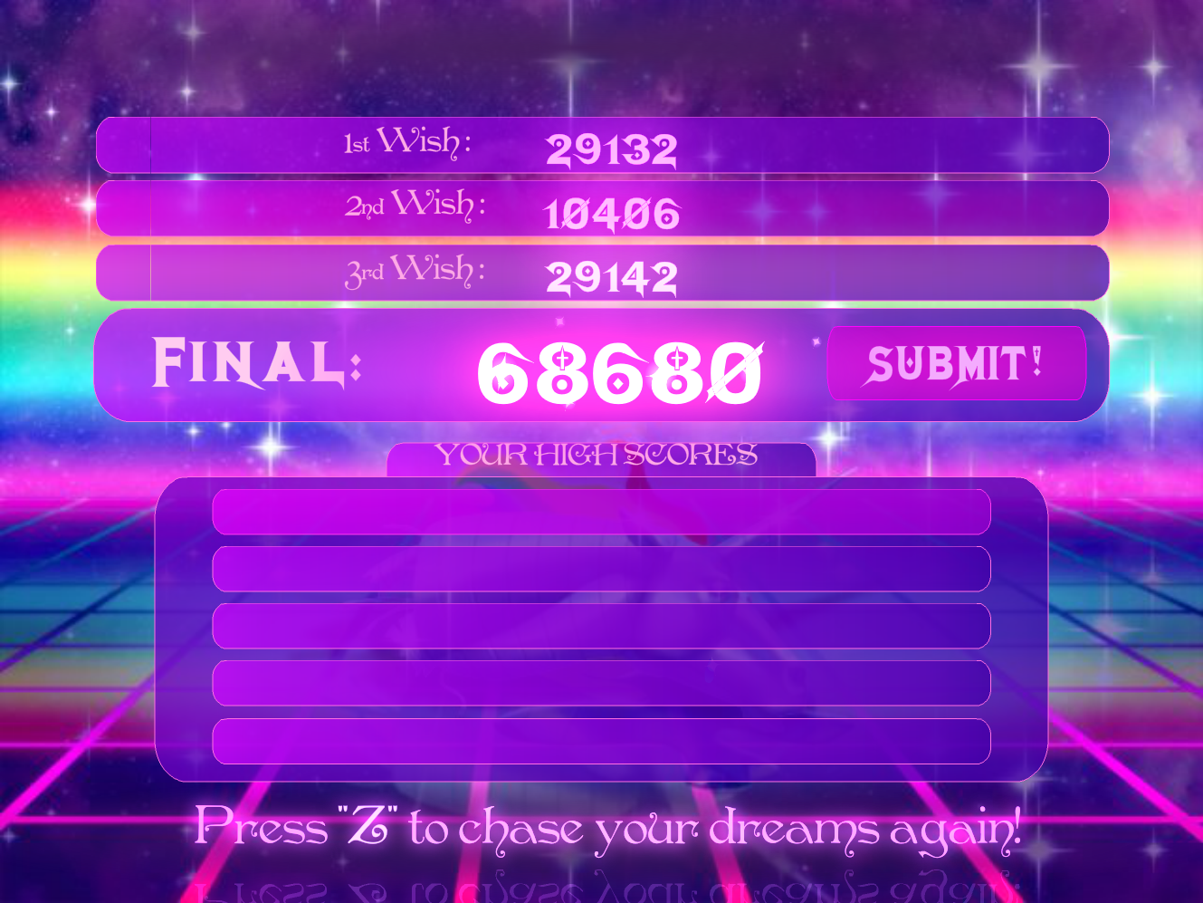 SHUT THE FUCK UP AND POST SCORES, YOU NERDS!https://www.crazygames.com/game/robot-unicorn-attack