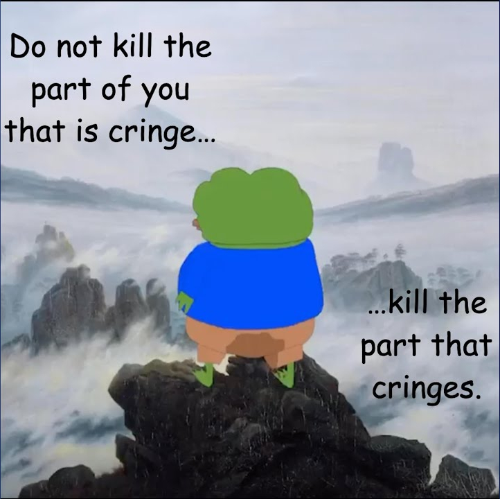 >>733931859>>733931971>>733932036Thanks bros. Good to know there's still a few decent people in this sea of bots and tourists trying to ruin this site for us.>>733932129I'm there with you. Every time i accidentally think too hard about my life i get suicidally depressed for like 2 days.