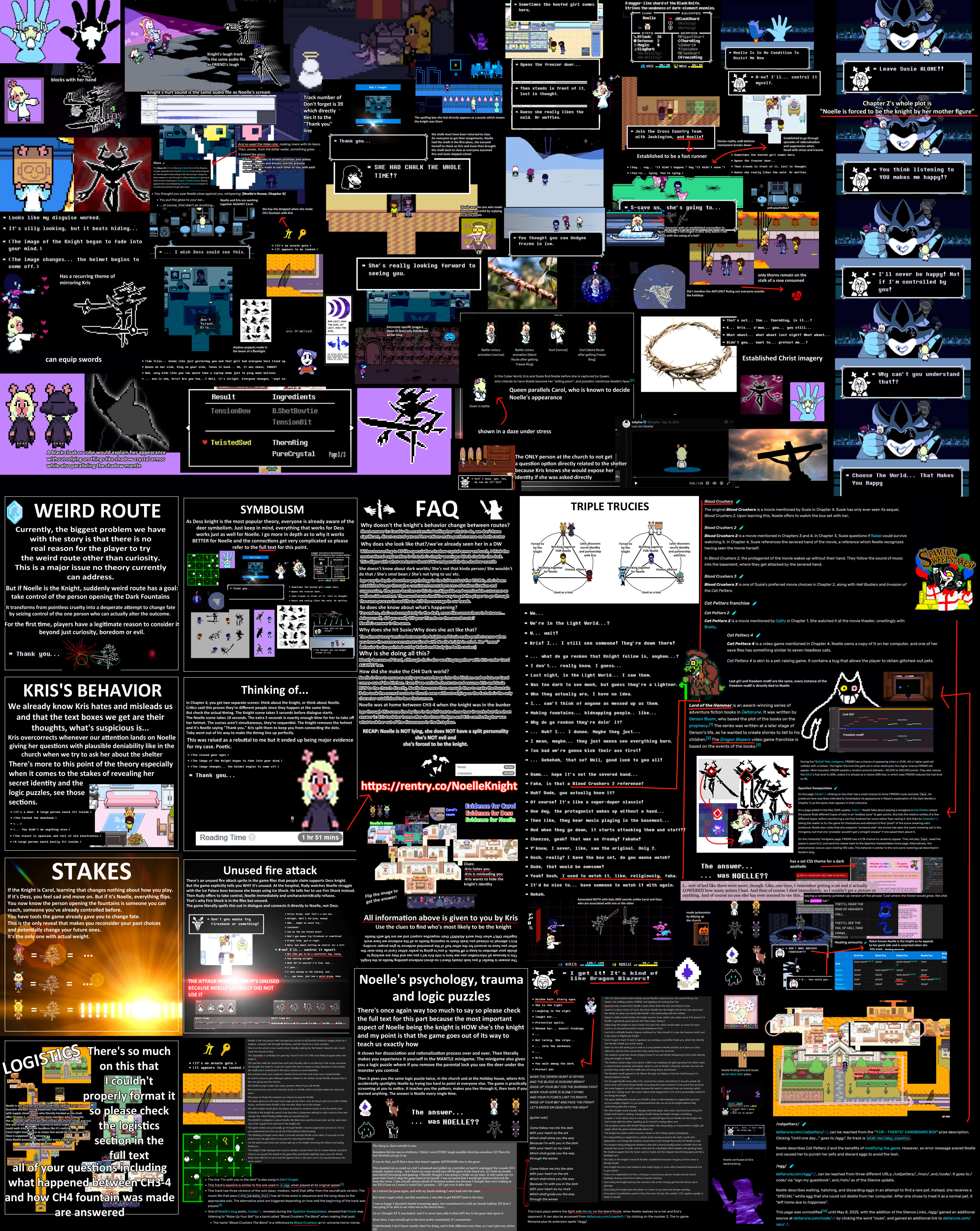 >>733932351I think Noelle using Dess bat sword as a weapon as well as becoming an ICE girl sidekick of Kris in chapter 2 would be too many character roles. Either Dess exist alongisde Noelle or Noelle would have to have a split personality disorder like Norman Bates and actually think she's her own sister. There's too many evidences that only point out at Dess for Noelle to be the knight. Although her reveal would be the most brain bending which is why it's probably that popular on 4chan only