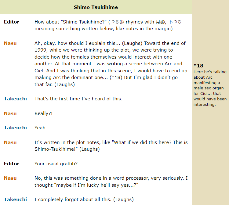 >>733963727New also started a new continuity which Witch on the Holy Night is a part of.They're different stories really, the story changed a lot