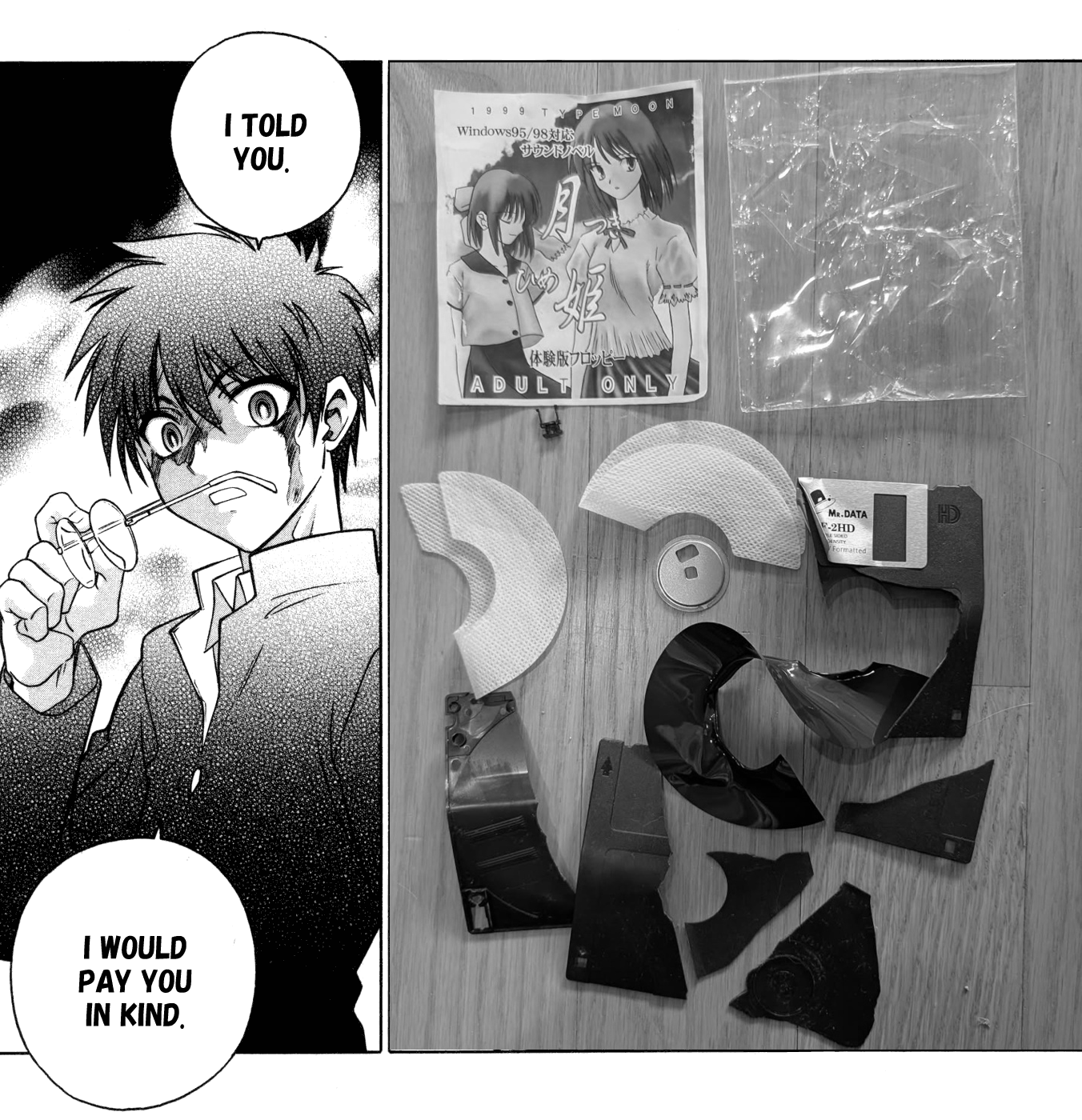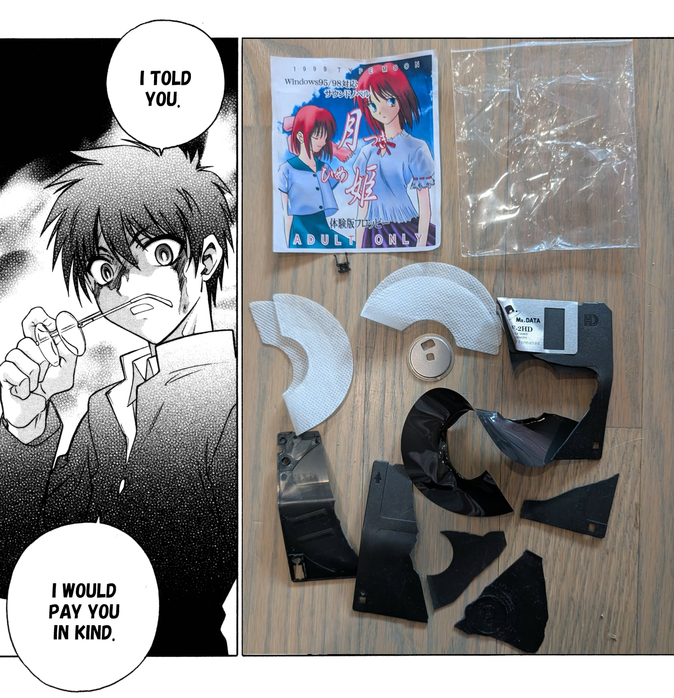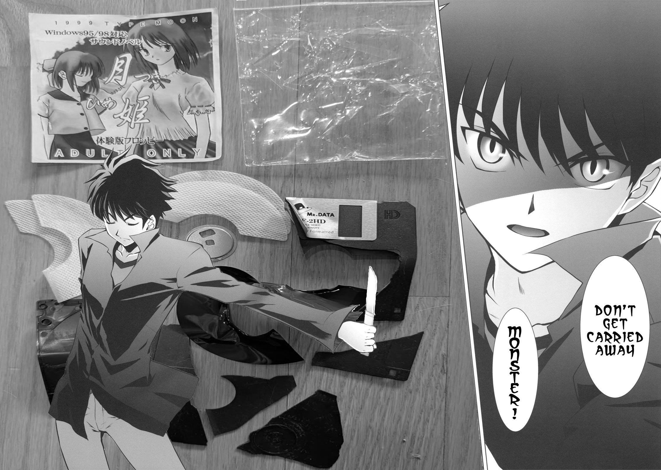 >>733971558If I had photoshop skills and like fifteen minutes to spare I'd take that one CG of Arc in seventeen pieces from the remake, but replace Arc's body parts with the pieces of that floppy disk.