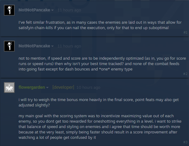 For anyone struggling to get diamond ranks in the cicadamata demo, do not treat it like it's 100% Neon White or Ultrakill and you'll have a better time with it. Changing your focus from speedrunning efficiency to score attack makes a big difference