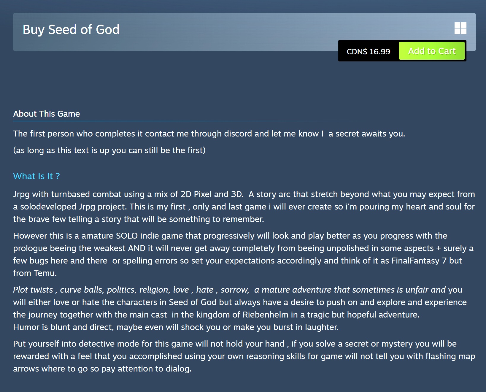 Okay I played it and it's kino. Will be boughted for sure.