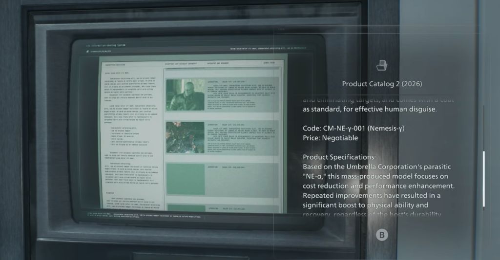 >>734005984Leon can read a file in the lab that details Nemesis and the other T-virus monsters.