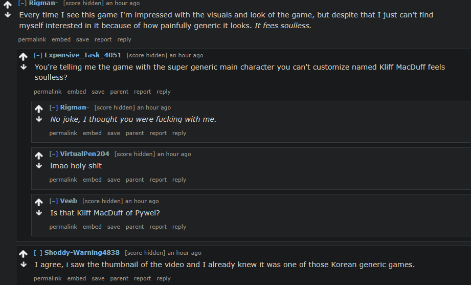 its a literal brown troon leftist freak mad that this game is chudcoded, i remember threads back when they were touchy every time you said something negative about trannies, and railed at you for "making fun of disabled people" depsite them doing the same thing posts earlier