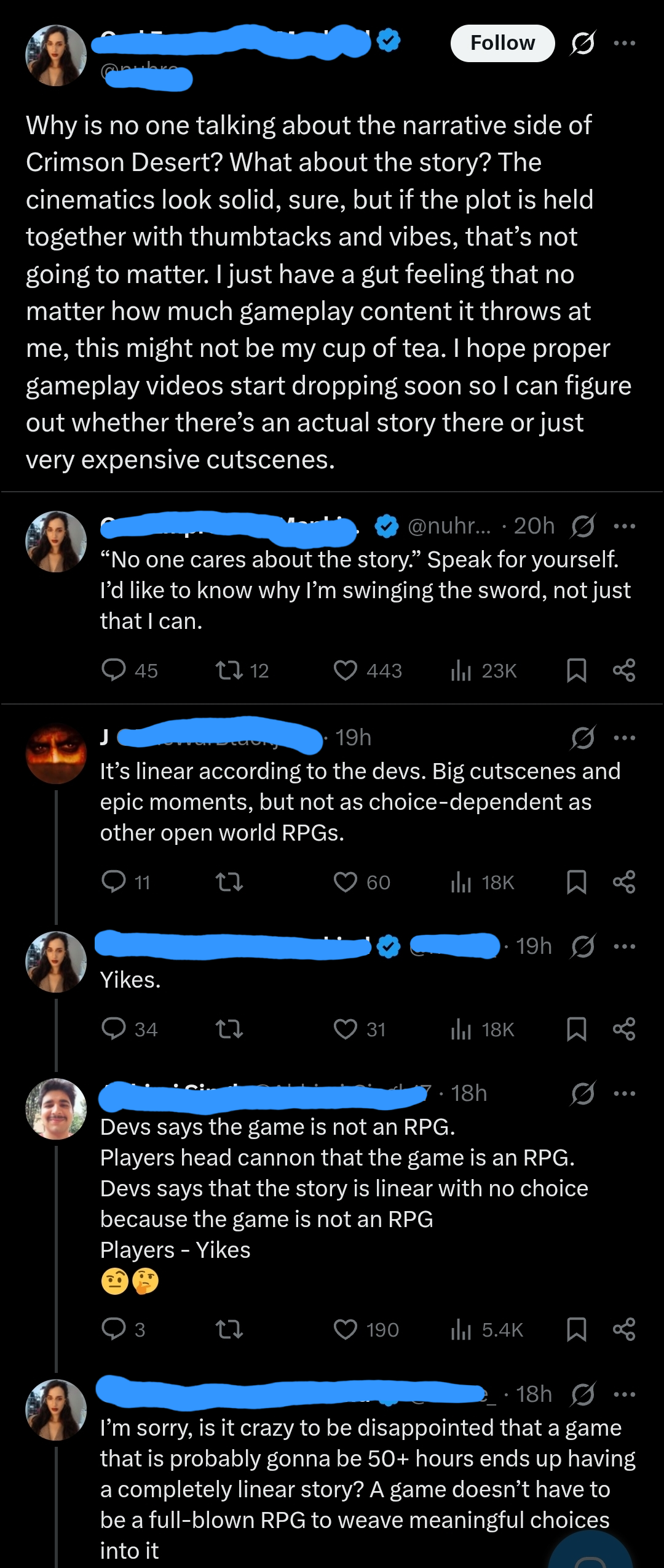 >>734053210Because I post both all of the negative and positive comments in every crimson desert thread.