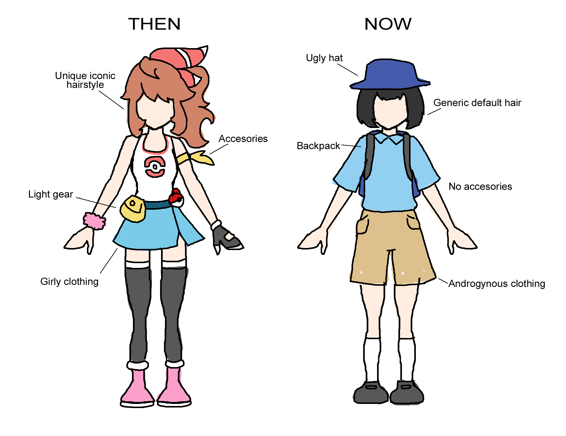>>734080785It can't even be called internalized censorship either since Pokemon has never put their protagonists in clothing that exposed.