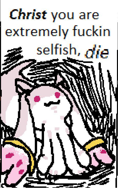 >>734097158"clover I will absolutely waste this chicken nugget and die of sadness, you know how prone to depression monsters ar- wait you don't? oh man ok so I will literally stop breathing from how sad I'll get if you kill yourself. I'll just lay on the ground and die."