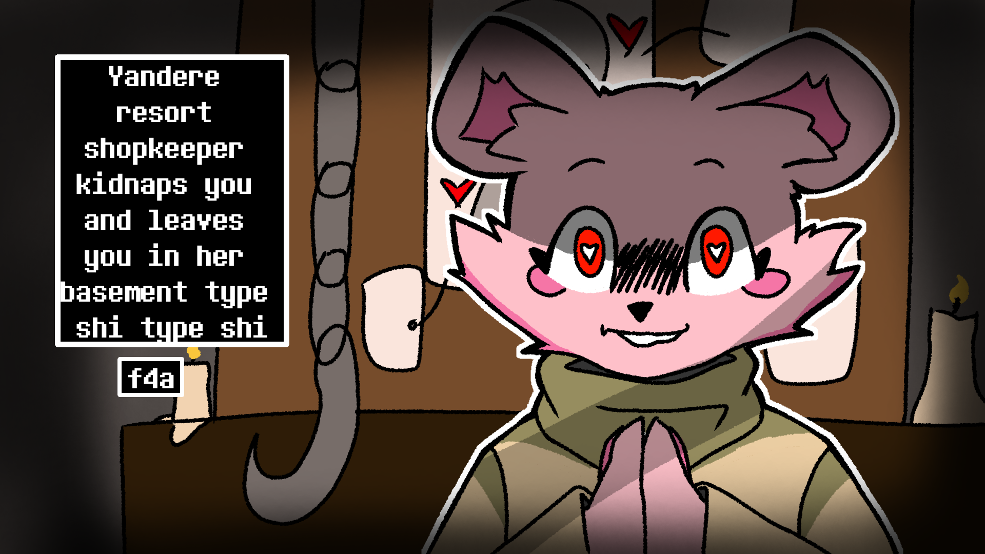 >>734142882possible candidates>Kitsy>DRY Sadie>Calista (Luna's mom)>Stella (Cyclops catgirl from Fountain tale)>That rabbit girl from that other Deltarune take>Guardener with sexy robot body>Some random overworld npc from a fangame>Pastra