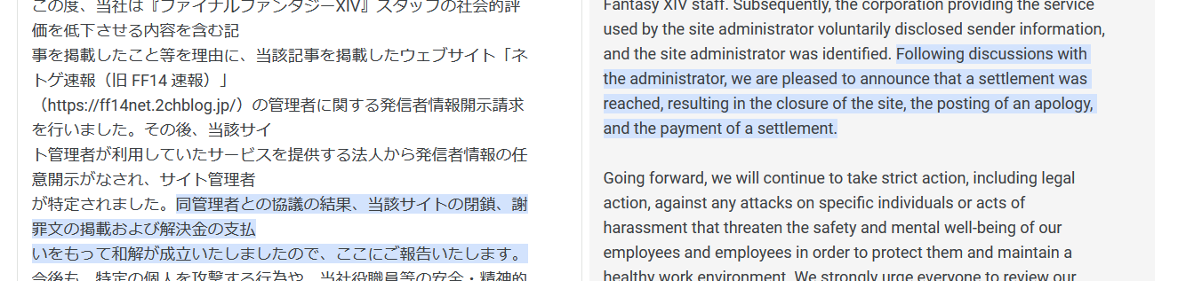 >>734133251Hurt feelings since from my understanding, all they did was repost a financial report showing the game in decline due to DT support and there's some law about how "journalism" is protected in Japan but not individuals, so SE sought damages since it hurt their public image despite being public information.