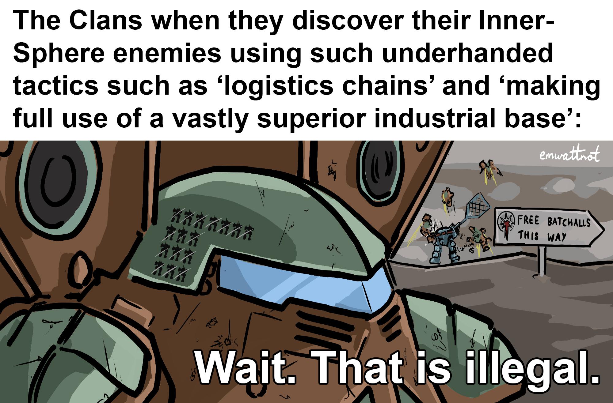 >>734175643They'd been fighting pretend little gay baby wars with each other wagering entire planets on single Lance battles. They went to the Inner Sphere thinking that they'd accept their terms because they had a pretty big tech advantage, but the Inner Sphere had been fighting the dirtiest most evil wars in human history with each other for centuries killing billions of people. Even with shittier tech, they just had a massive tactical and strategic advantage because they played to win, always.