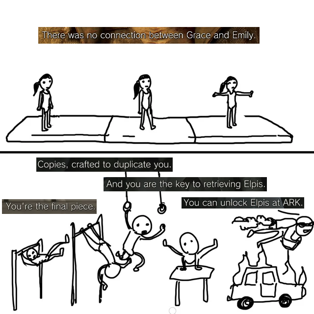 >>734189530>Grace wasn't a clone, just some random orphan he adopted.Grace, Emily and the Girl are all clones of Chloe who died in 1990. The reason they think Grace is special is because why would he could through the trouble of cloning her. Not realizing he did it purely for sentimental reasons.>Also, you'd think the password will be locked to match Grace's biometrics or some shit, because every idiot can just figure out such an easy password.That's literally exactly why he did it. Since its Spencer everyone expects its to be some kind of elaborate lock, hence the clones of Grace trying to figure it out, but its just a hokey riddle, a "blind hope"