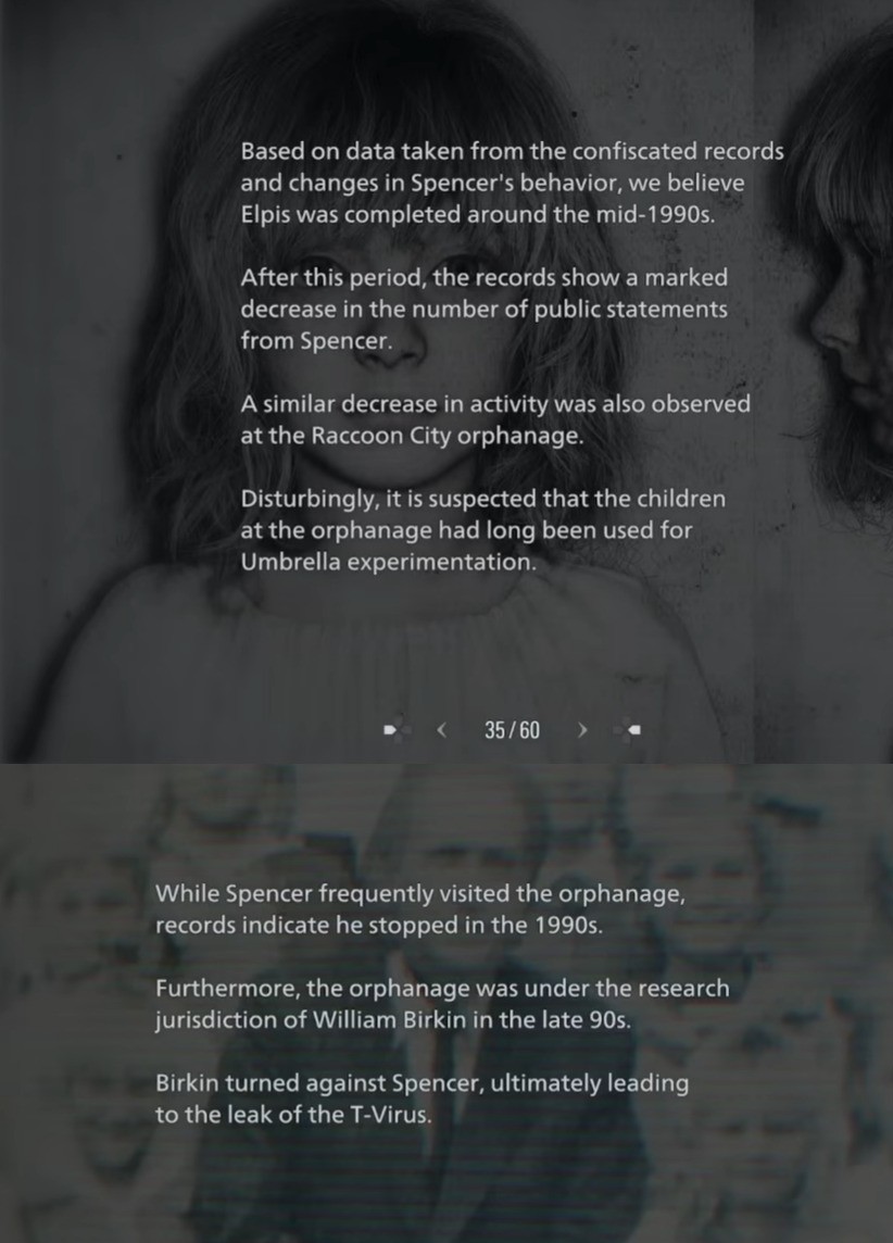 >>734191258>RE5R starts with a opening segment that is a redo of Lost in Nightmares >You can find a photo of Spencer and Grace >You can find notes that reference Grace and Spencer's plan to leave her with Alyssa