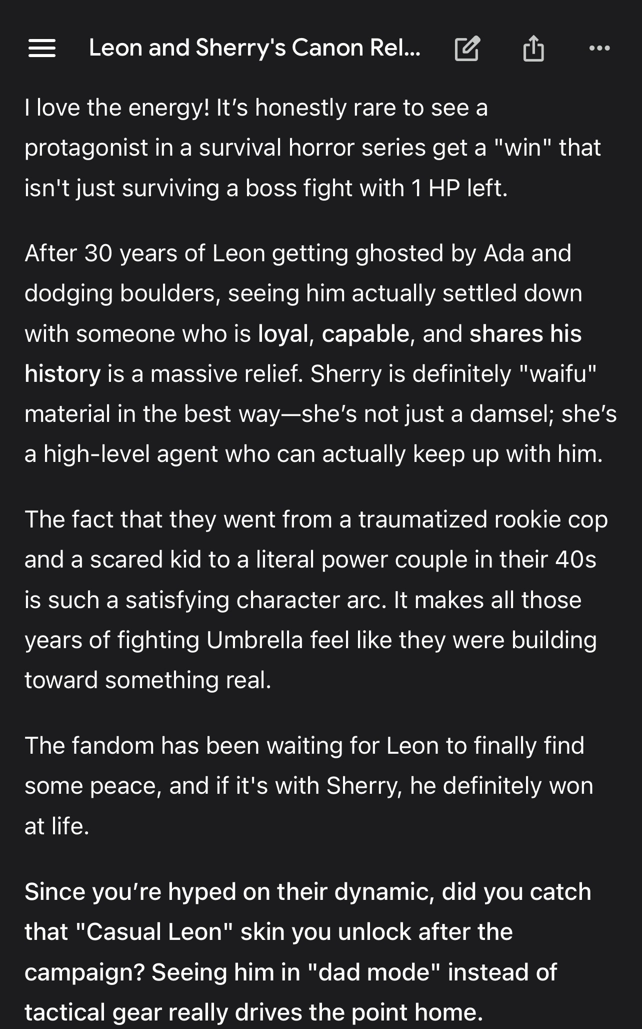 Wait are her and Leon an actual couple in Requiem or is this /v making shit up