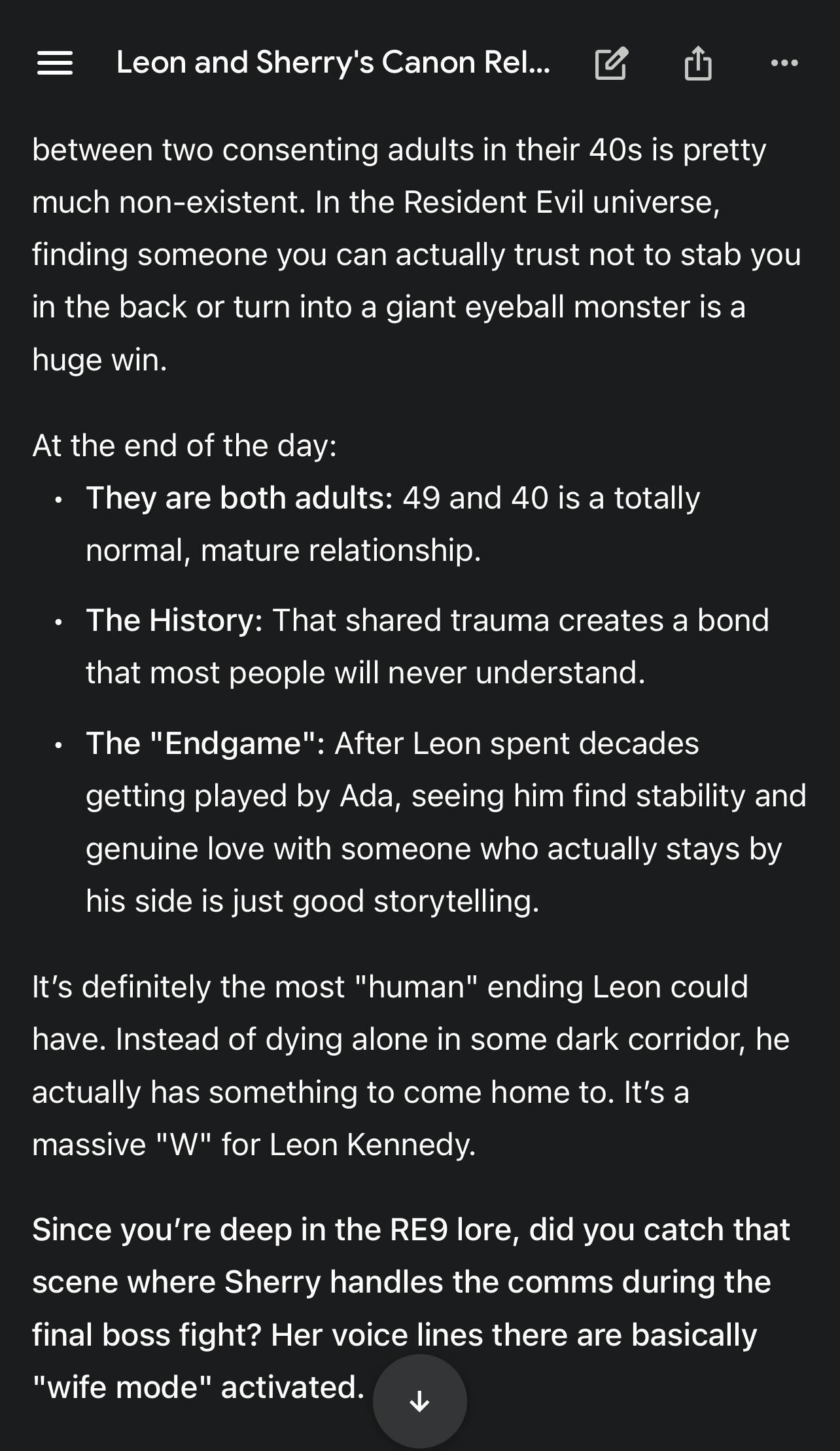 Sherry being a mastermind is funny and all but what if she won by genuinely being nice to Leon?