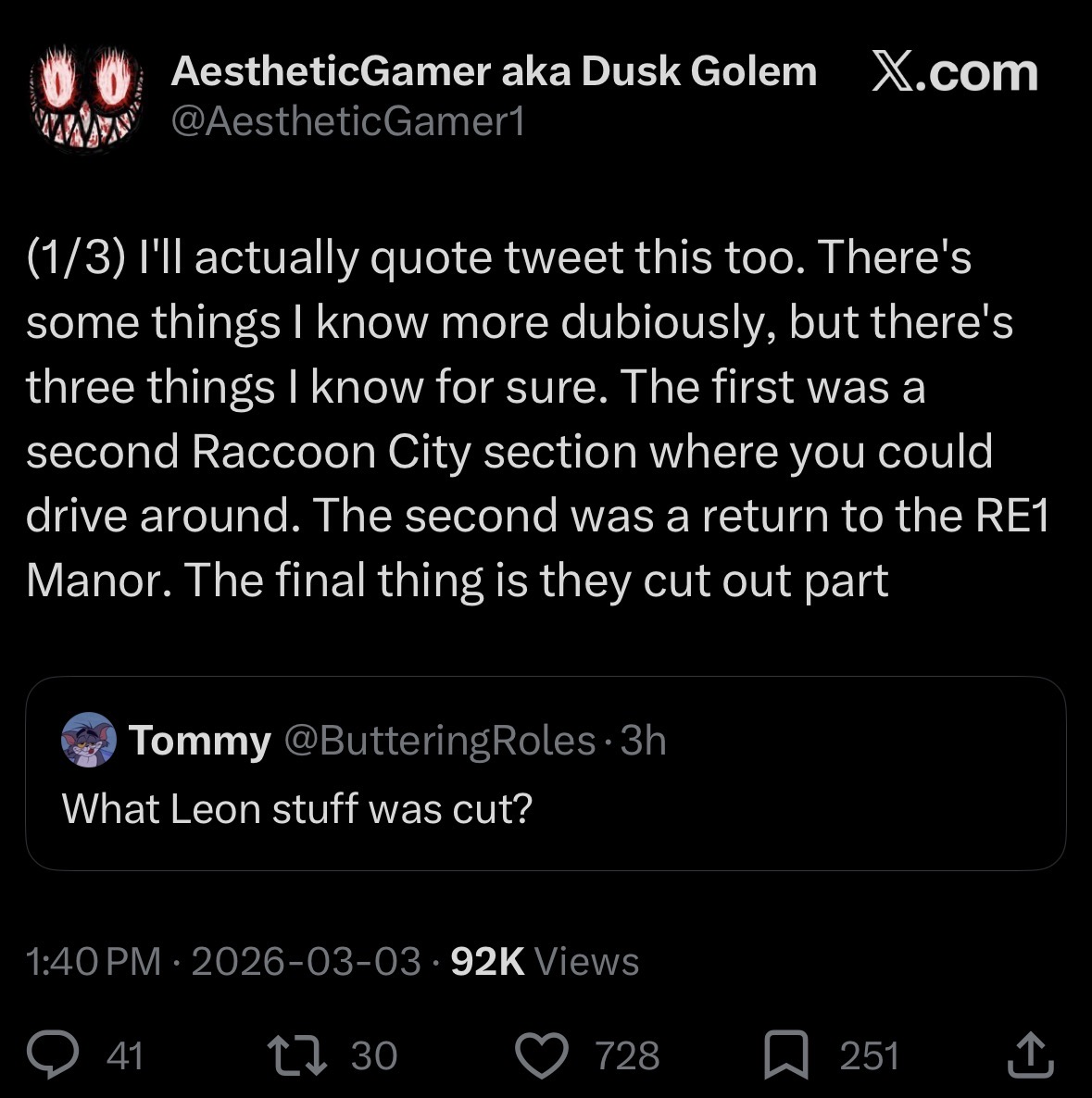 WTF we were robbed of kino. Although going back to the mansion as Leon would make no sense so hopefully they’re saving it for Chris and/or Jill. Maybe they’re saving it for after their RE1 remake, they have to retcon the mansion blowing up.