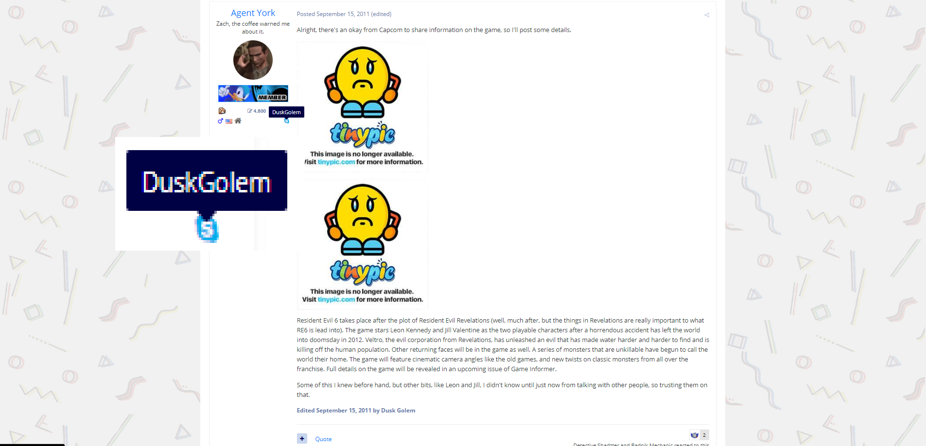 >>734221865All the leaks he gets are from early builds before aspects are changed. Cope. You're going to need to source some of that later shit you're saying because I don't remember DuskGolem saying ANY of those retarded plot points you're mentioning. What I do remember is how Village was going to be Revelations 3, and how RE Apocalypse and Rampage were WIP titles for entries that may have been canceled.