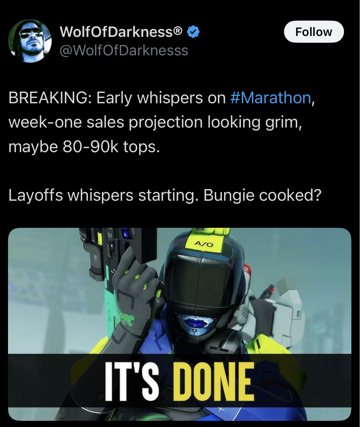 >Bungie cooked?If Destiny 2 couldn't kill them, it's going to take more than Marathon