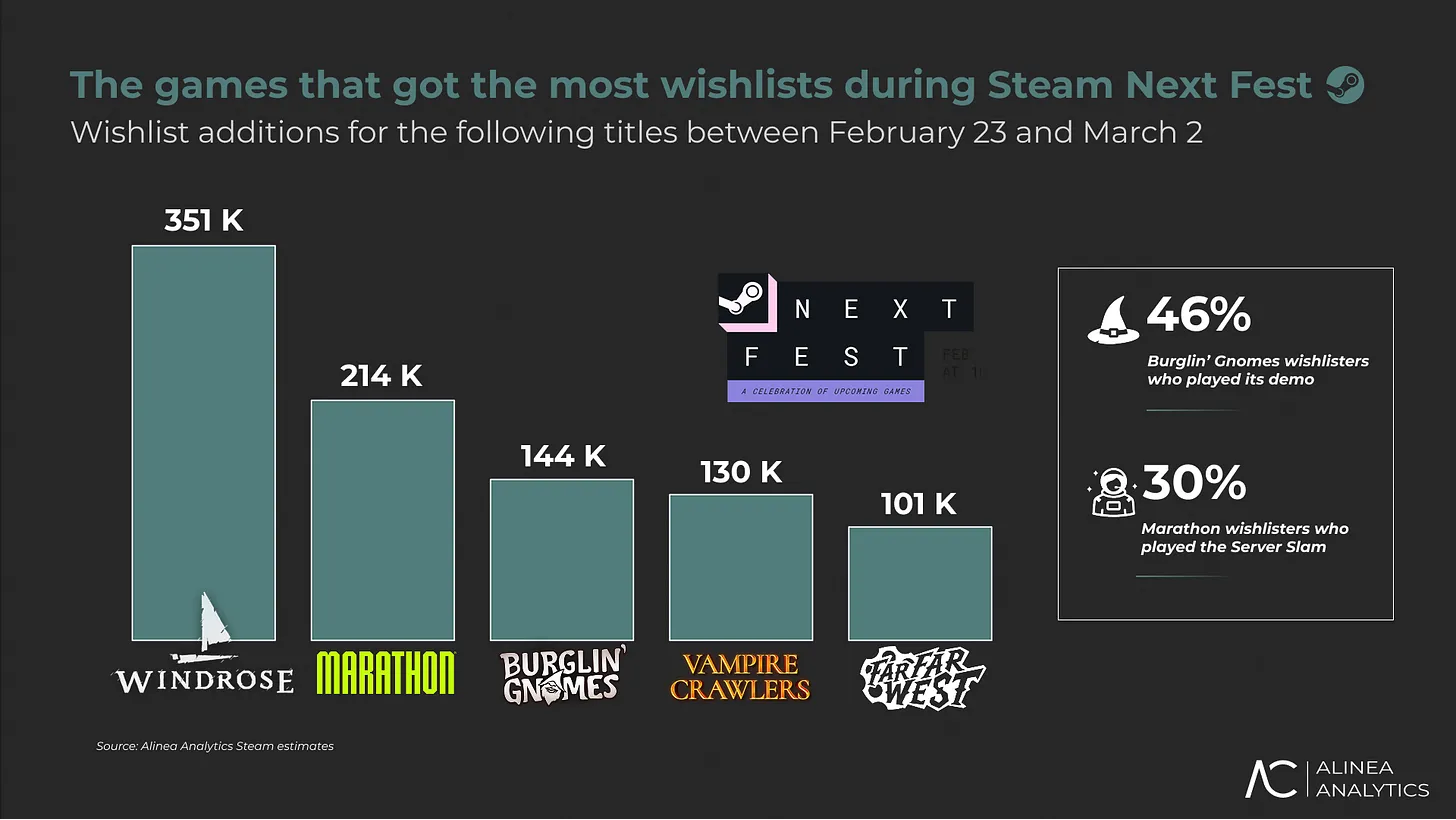 >>734249448While 250k is a decent number, the rest of the analysis is more negative than positive. https://alineaanalytics.substack.com/p/steam-next-fests-wishlist-winners