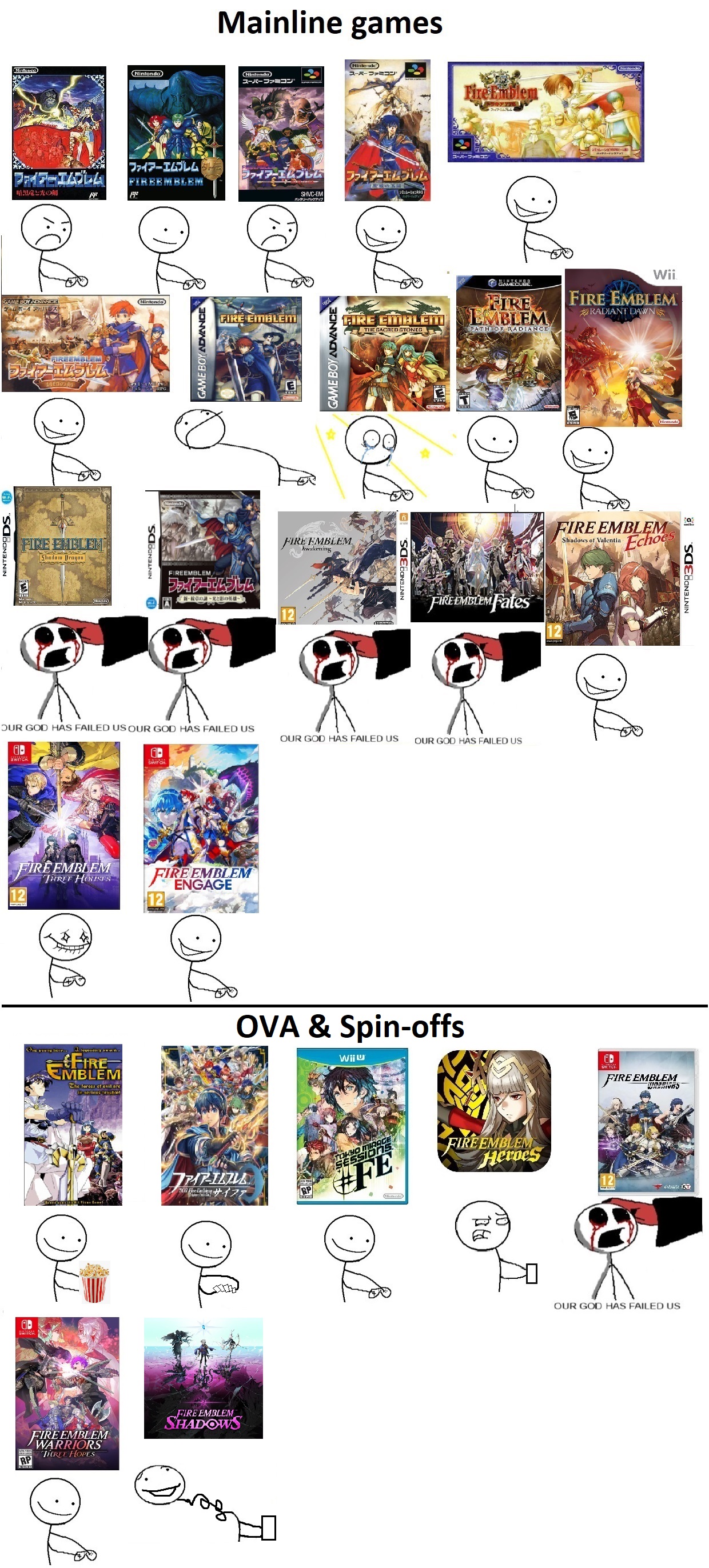 ok here are the basic questions I have:genealogy was a horse game and echoes was an archer game. what kind of game is this?are there some classes that are op or ones that are pure shit? it seems like there are a lot of hybrid classes in this game but hybrids were kind of shit in the other fe games I played so far.do I want to promote as soon as I can or hold off?should I try to train everyone or only pick a few units to use and bench everyone else?>>734316425I did but I ended up like this.>>734316983damn this sounds so complicated I don't even know what you're saying. I wish you could just do supports in some vn section outside the regular game or something.