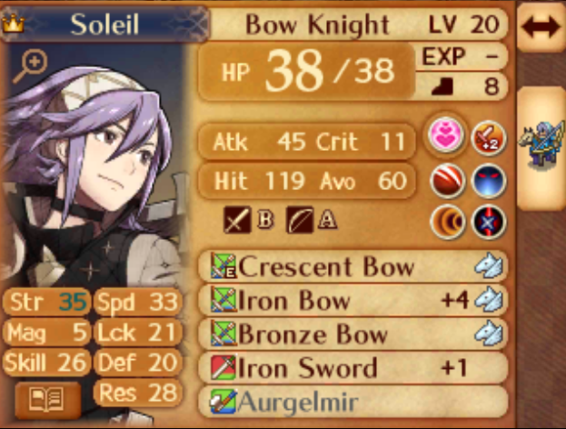 >>734323943I hate Fates' RNG so much.If you haven't already, now is the time to arms scroll Niles to A-rank bows. The jump from B to A is +5 avoid which is significant on that map