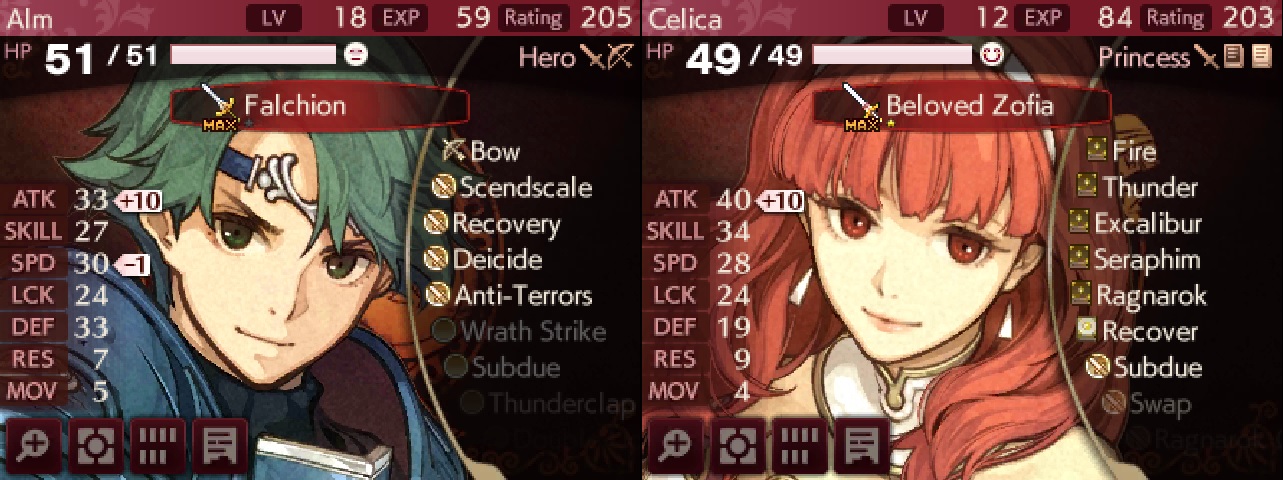 >>734317652>what kind of game is this?It's pair up slop. Use pair up to win the game. Tomes and shurikens are the most broken weapons, generally speaking. Bows are actually kinda good too. The game's weapon system is retarded though, with two sets of each type and all the dumb debuff shit. You should also know that the numbers on the screen are almost never accurate for manual calculations because there's all kinds of obfuscated shit added to the calculations like weapon rank bonuses. Birthright is also incredibly easy if you start with it. Ryoma can almost literally solo the game with his special snowflake prf weapon once you get him, so you don't really need planning for it. Conquest is a little more involved, but if you're not playing Lunatic, you can rely heavily on Camilla and Xander without much thought.