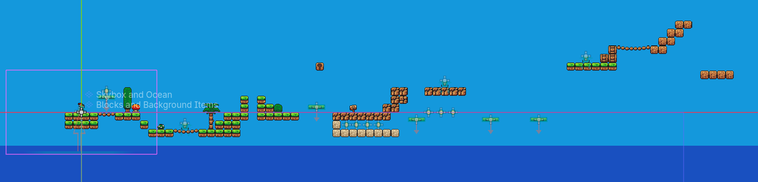 Testing some of the background objects. I want the first few levels to leave a great impression. It's still placeholder art, but I think this is a good first step.
