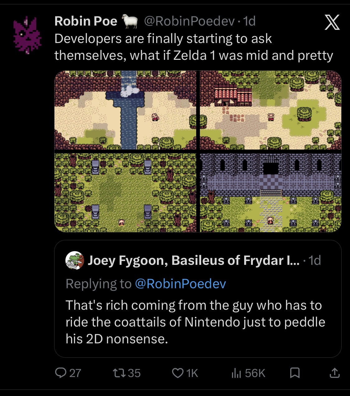 >>734388194I would love to follow Poe for the Zelda progress, but that guy can't stop himself from talking shit. Wish Twitter had an option to remove text from certain accounts.