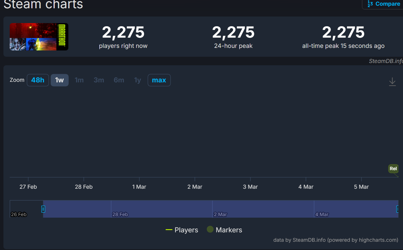 >>734349606$40 vs free is highly in marathon's favor sadly. but if it doesn't break 100k, it's still probably over due to the game's budget.