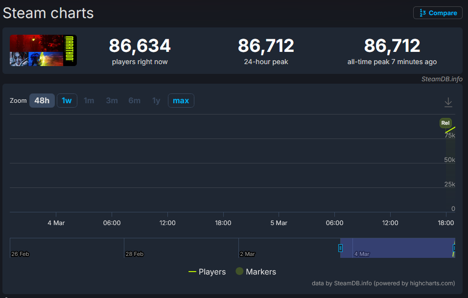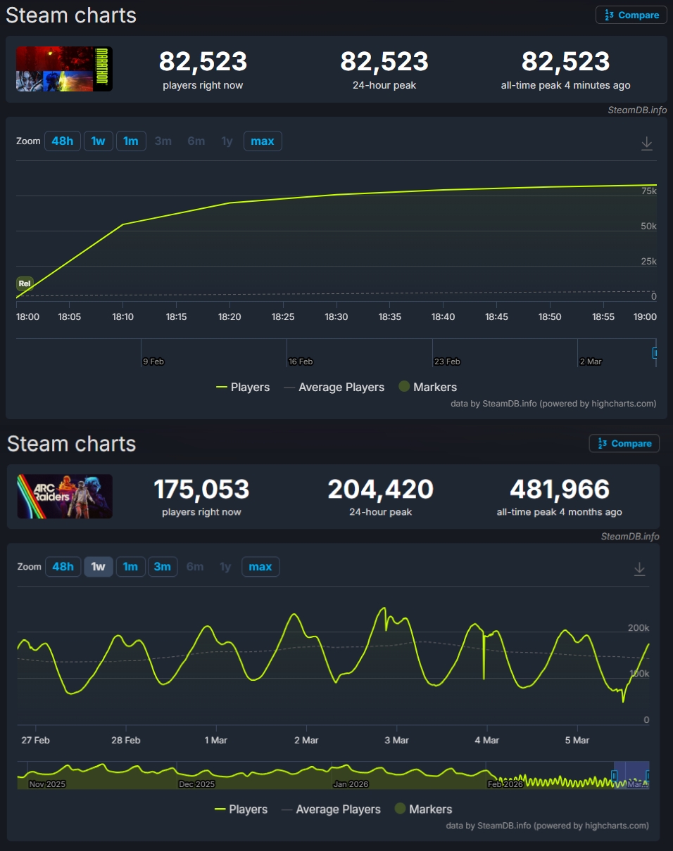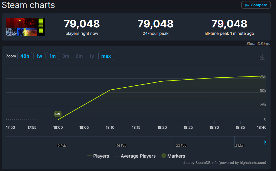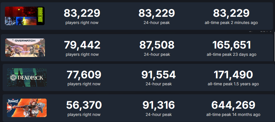 >>734350087>>734349346Highguard reached 97k players and still flopped.So I wouldn't call Marathon a win just yet.We'll have to see the player retention.