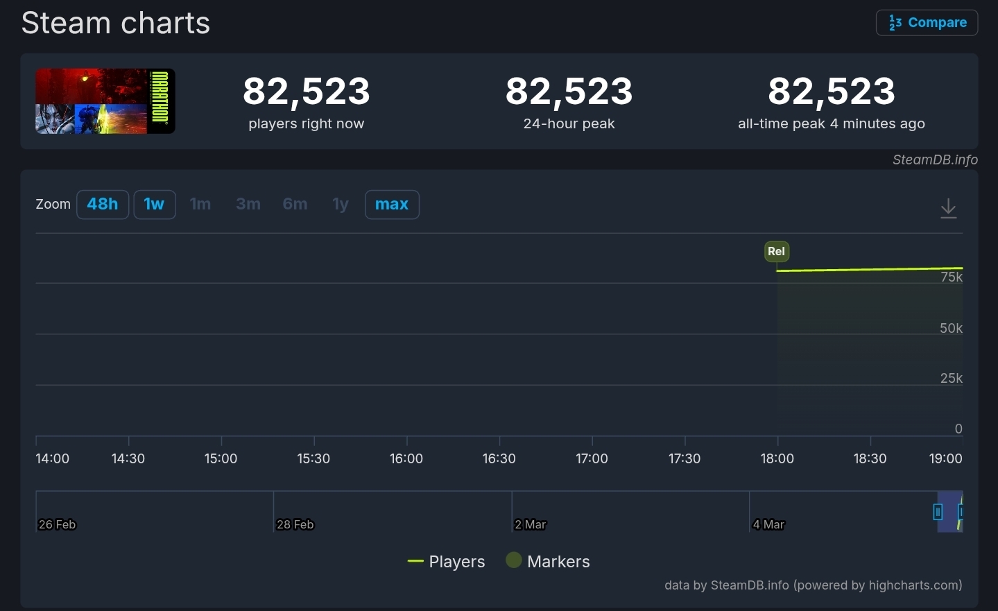 >>734358030Do we have any numbers about the server slam peak? Steam would just go to regular Marathon community tab with zero players