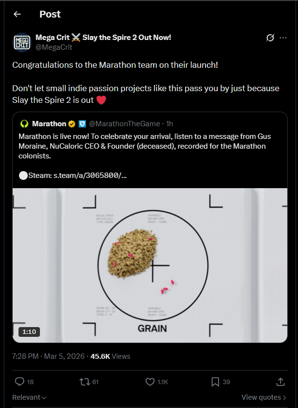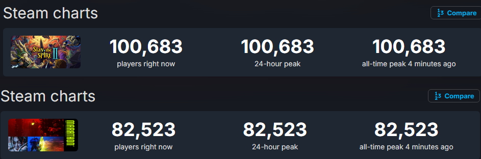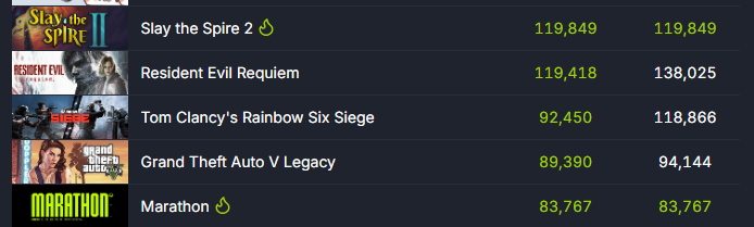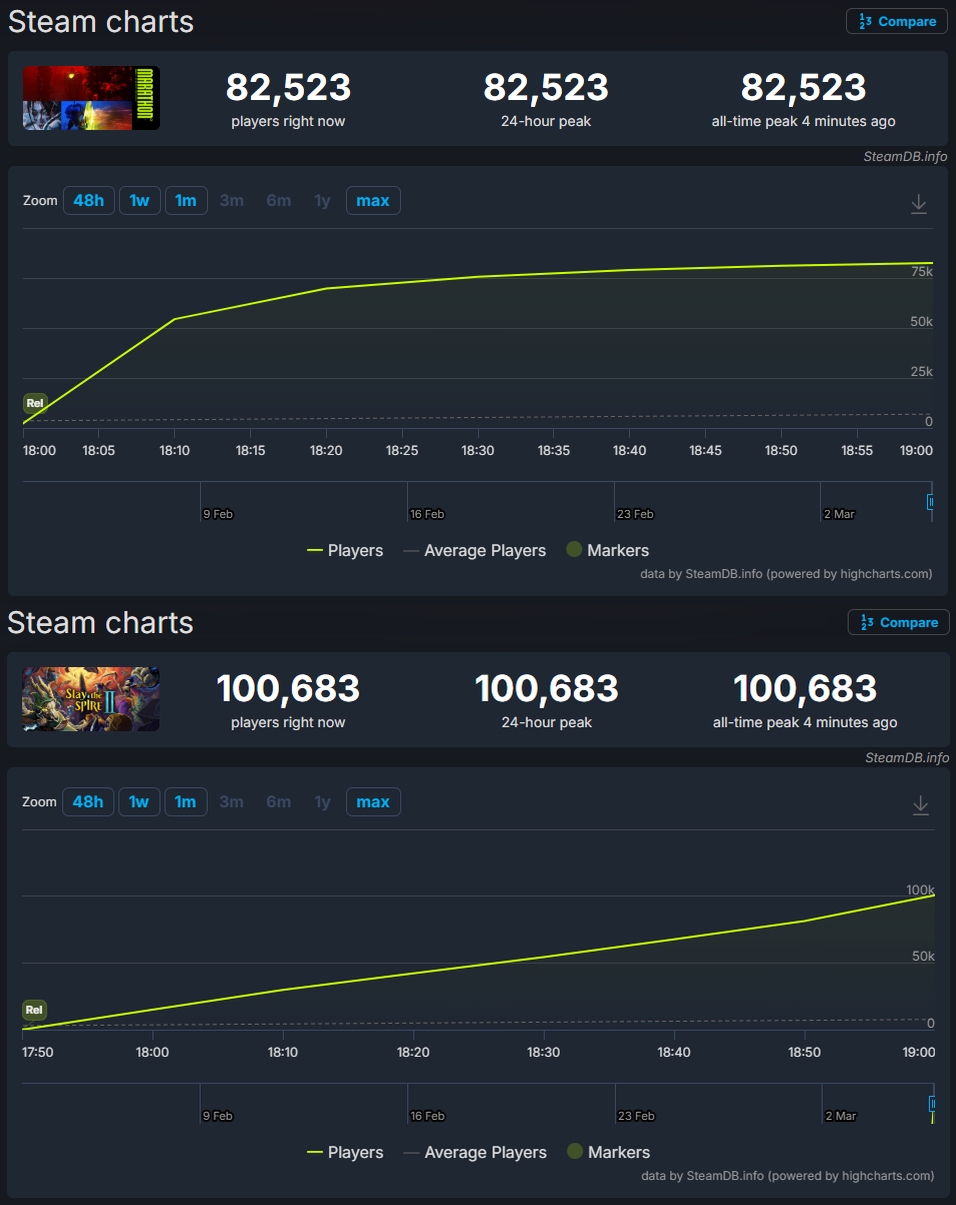 >people reporting having issues buying on Steam. Marathon and Slay the Spire 2 dropped at the same time