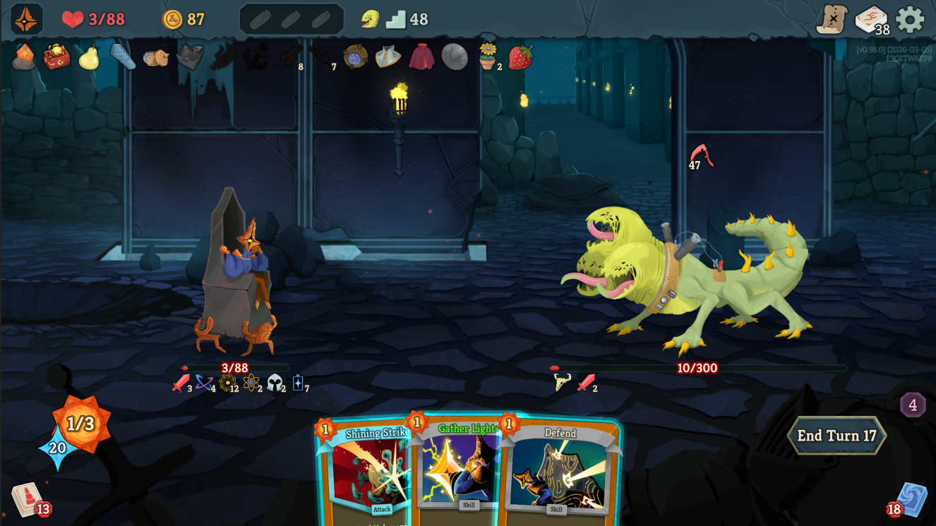 >start run and finish act one>one hour gone in what felt like minutesSo this is the power of slay the spire...so far it's working perfectly on the deck despite the unknown status too