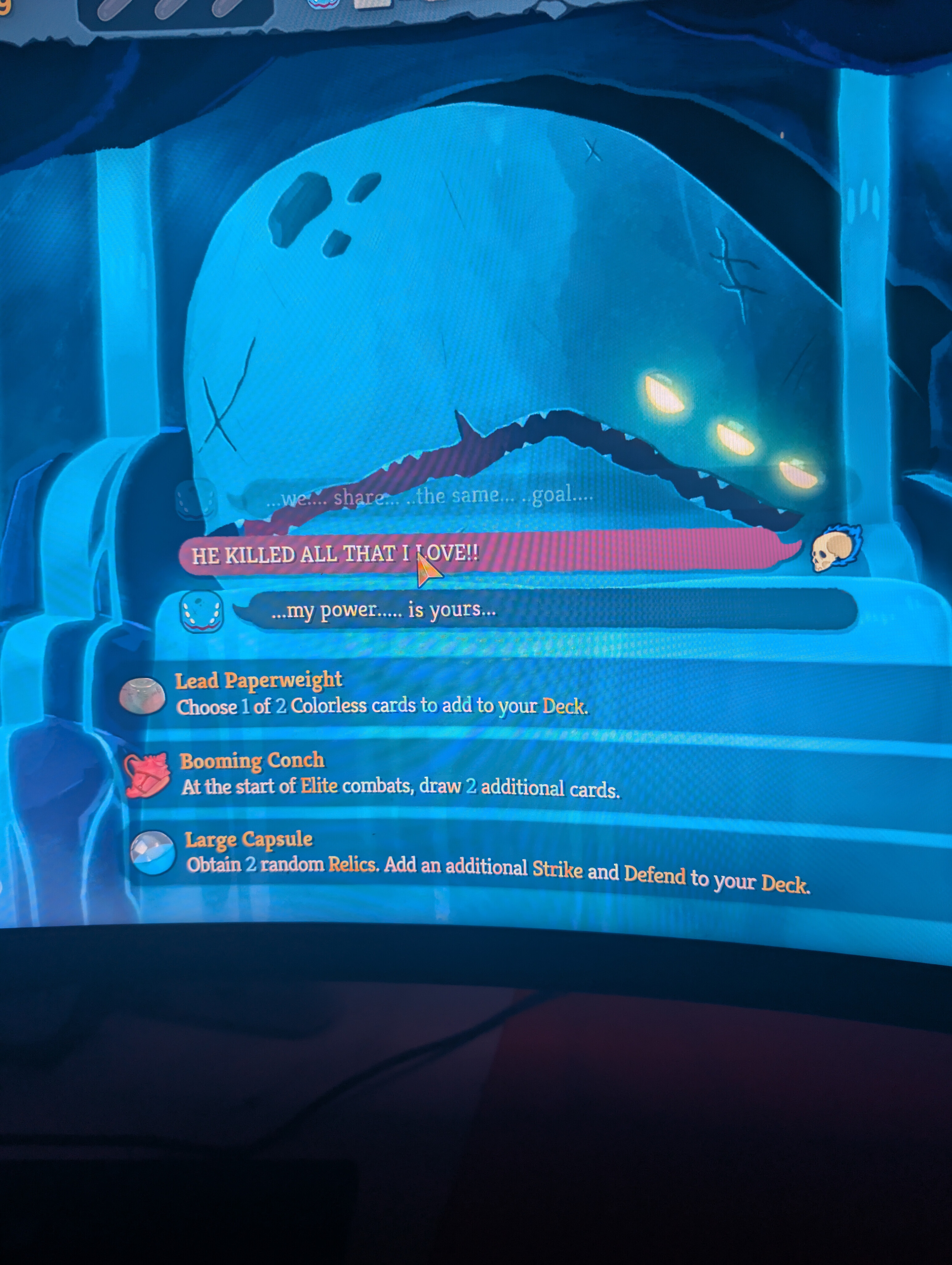 Won my first run, closer than it probably should have been but still felt good. I'm blasting all over my keyboard and monitor. Won't be able to properly judge the game until I've sunk a lot of time into it but initial impression is just "Slay the Spire but more" which makes me happy. God I love slaying spires
