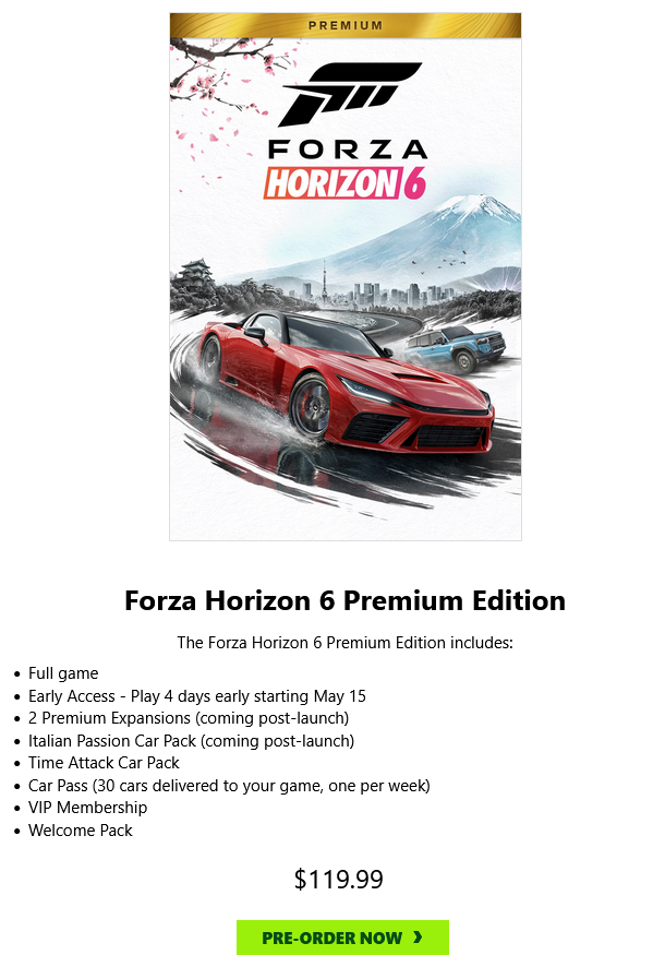 >>734401641I am obligated to buy Forza Horizon 6 so I can drive the cars.