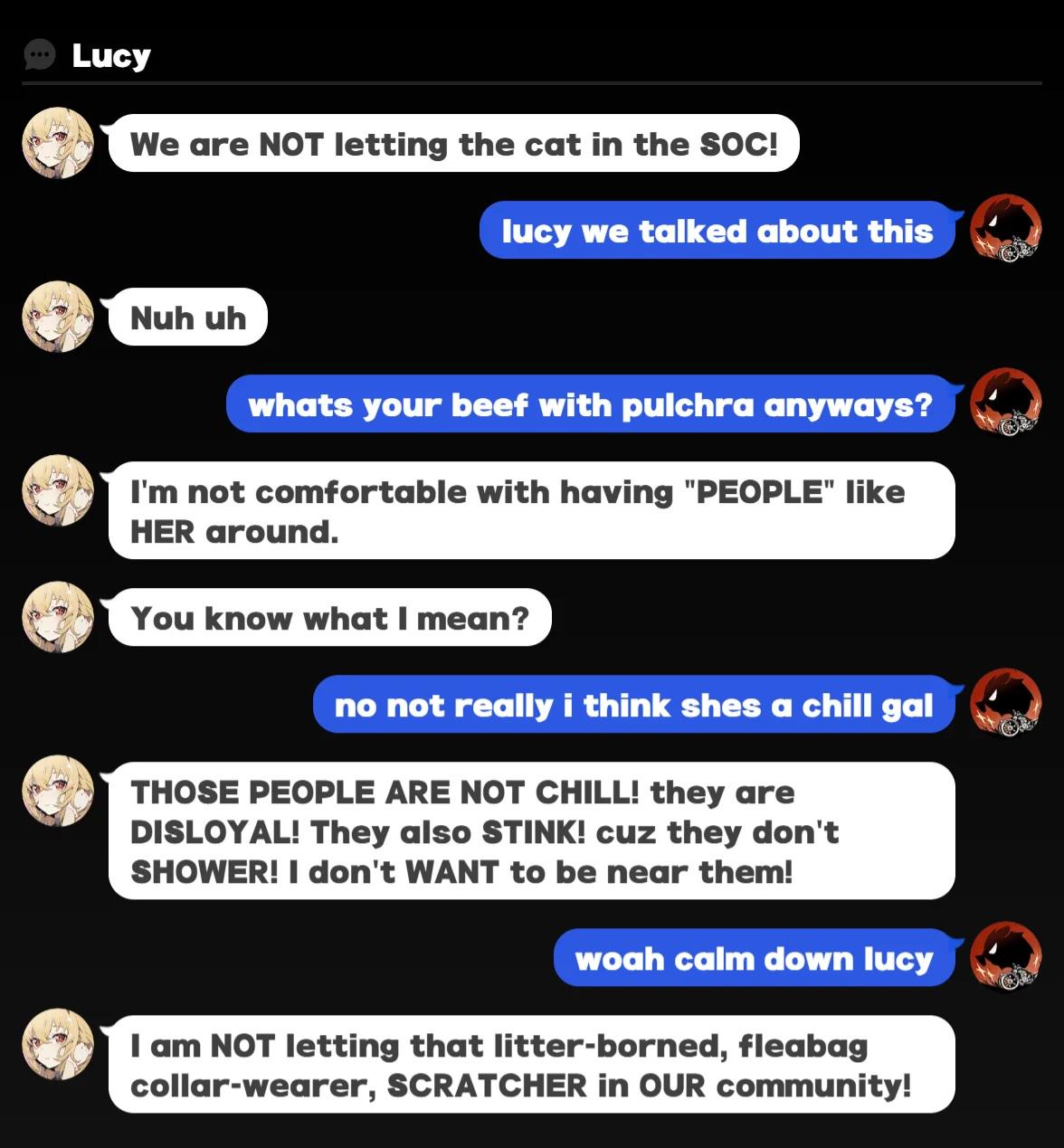 >>734442709>>734442883Bros Neko is the black people of ZZZ agents.You do NOT want her>t. proud owner of a M6+1W1 stupid fucking cat