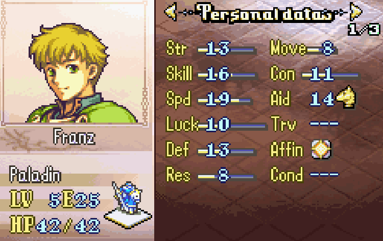 >>734418503Franz is a noob trap literally just use Seth and sell the knights crest to buy more javelins for Seth.