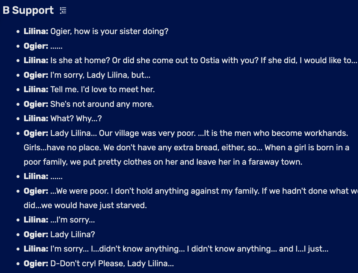 >>734434352>Sophia is very mentally slow, but proof that dragons and humans can coexist I guessIirc Sophia's schtick is she's constantly having visions of the future, so is constantly distracted. Iirc Niime's support talks about this. I could be tripping balls though I read the supports for this game like a decade ago