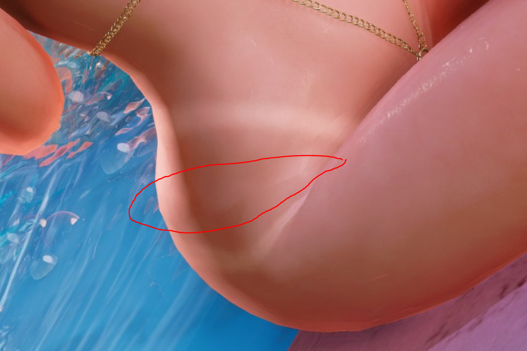 >>734497432It's everywhere.It's not like the hips and the torso are a separate model. Even Blender renders it the same. And the worst thing is that it follows the uvmap perfectly, the seam is unwrapped in the same area as hips and there is no seam on the texture itself. It's like the normals on that one specific part are somehow absolutely fucked.