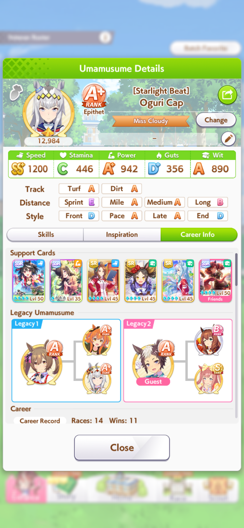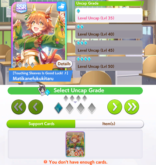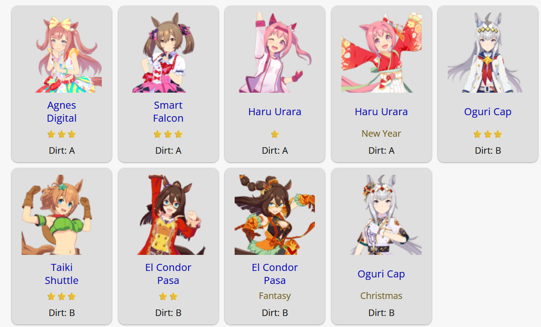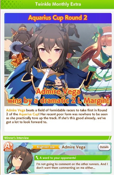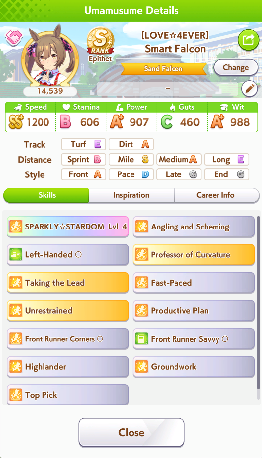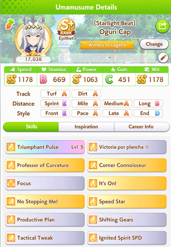 I don't know if I can bring myself to convert Cafe to end again for the next CM. She has shit affinity with all the natural end closers so Long S ends up being rare, and inspirations in general are also worse. But late surgers won't have a single good accel, so running her like that feels like throwing.