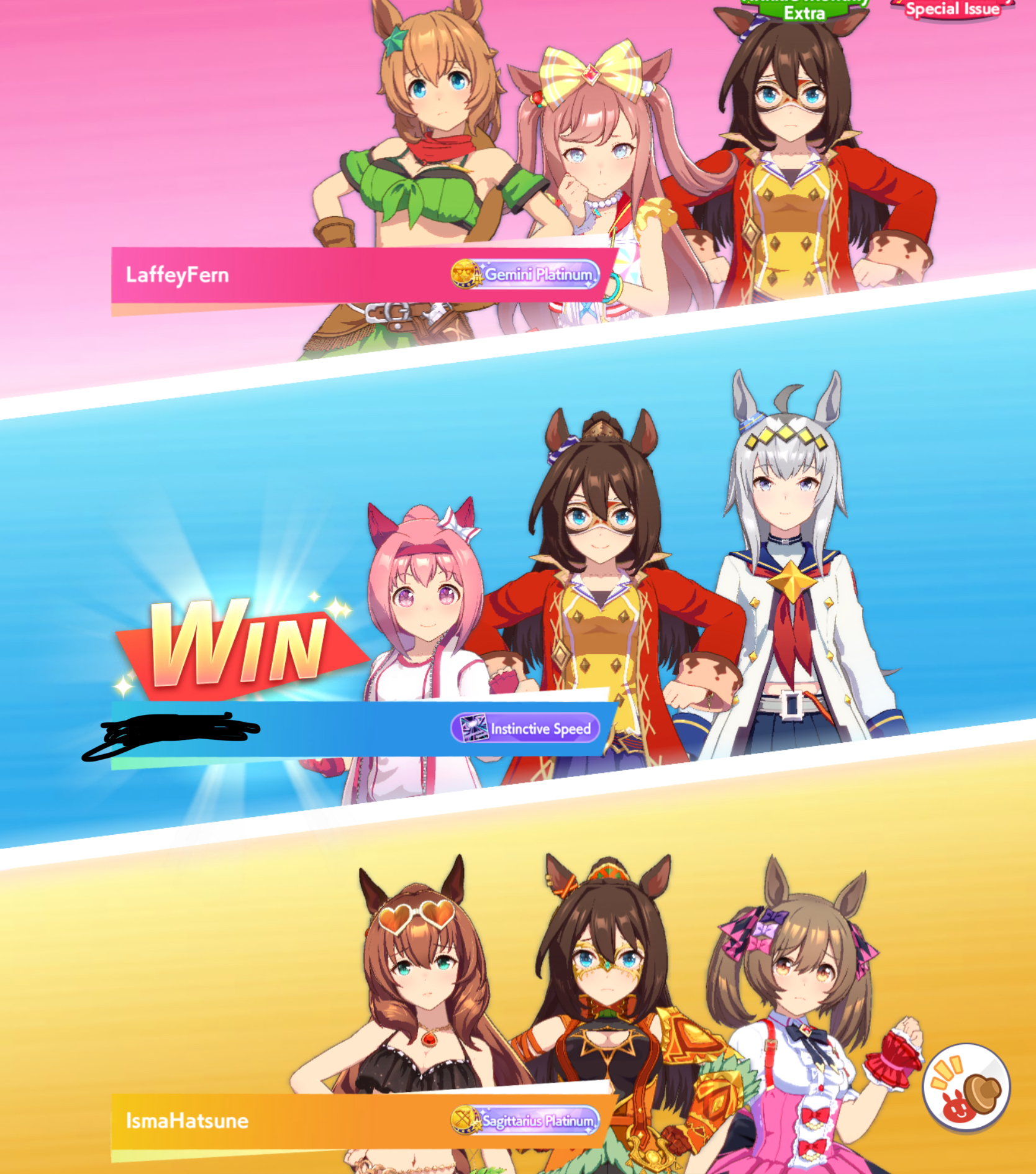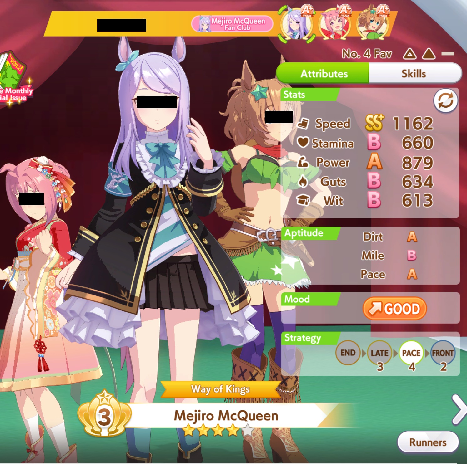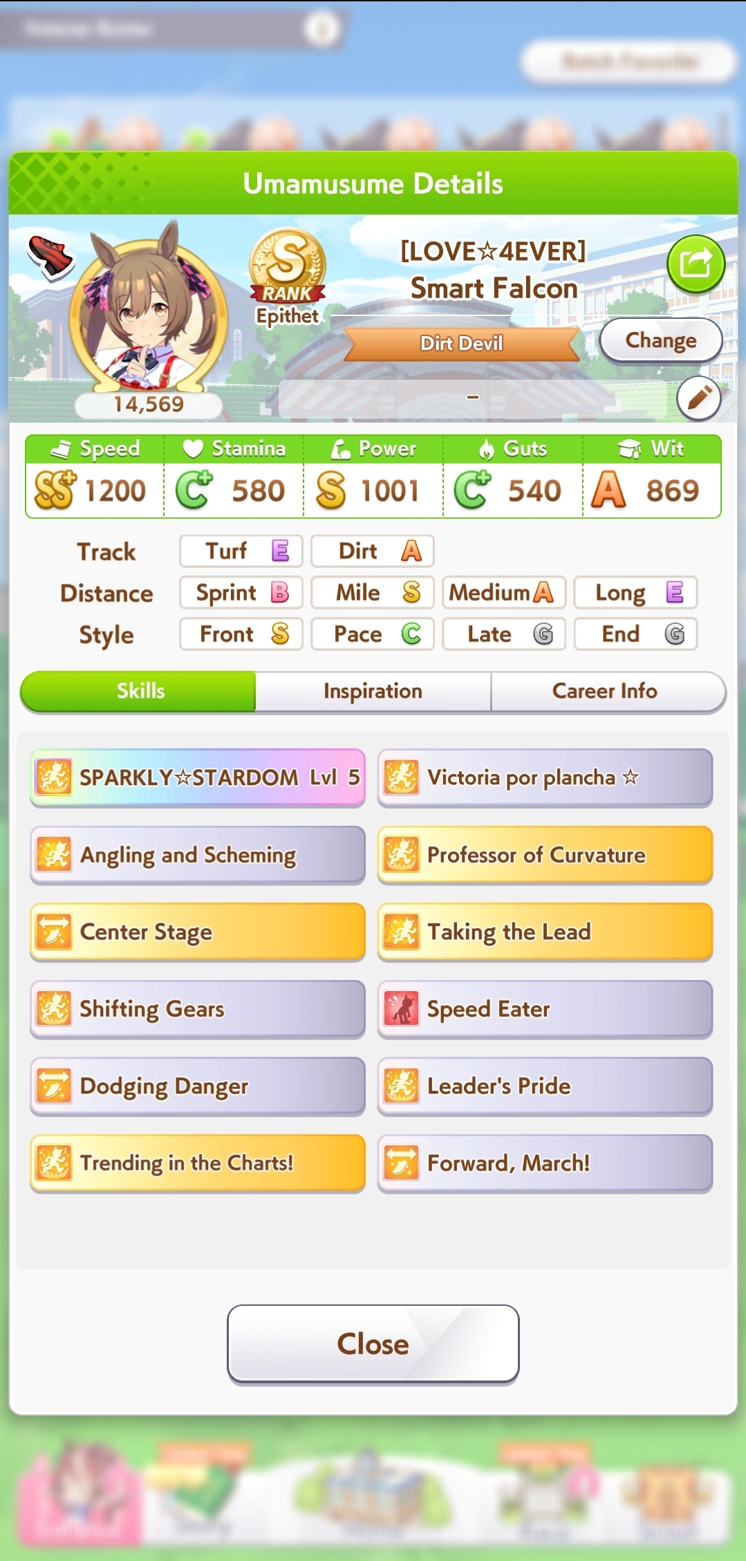 I don't know if I can bring myself to convert Cafe to end again for the next CM. She has shit affinity with all the natural end closers so Long S ends up being rare, and inspirations in general are also worse. But late surgers won't have a single good accel, so running her like that feels like throwing.
